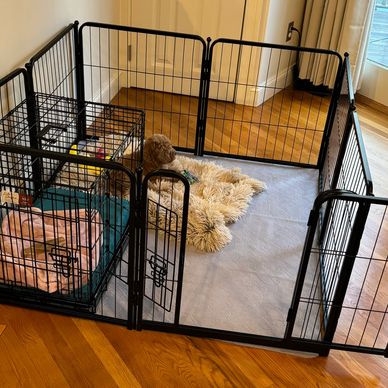 Set up an area where your puppy can sleep or stay safely when you have your hands full. The Puppy Playbook has more details.