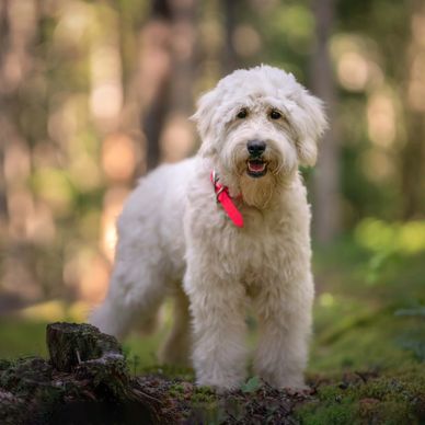 Their temperament combines the friendly, patient nature of the English Golden Retriever with the Poodle's intelligence, physical grace and alertness.