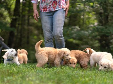 Our puppies are well socialized, started on house training and comfortable in crates when they go to their new homes.