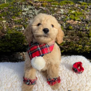 These sweeties are from the JEANS litter - Charlie and Angus are their parents. They are medium-sized, English Goldendoodles.